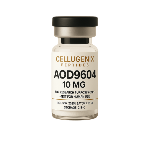 AOD9604 is a modified fragment of human growth hormone (HGH) engineered to support fat metabolism without stimulating growth pathways. In research settings it’s used to study lipolysis (fat breakdown) and the inhibition of lipogenesis (new fat formation).